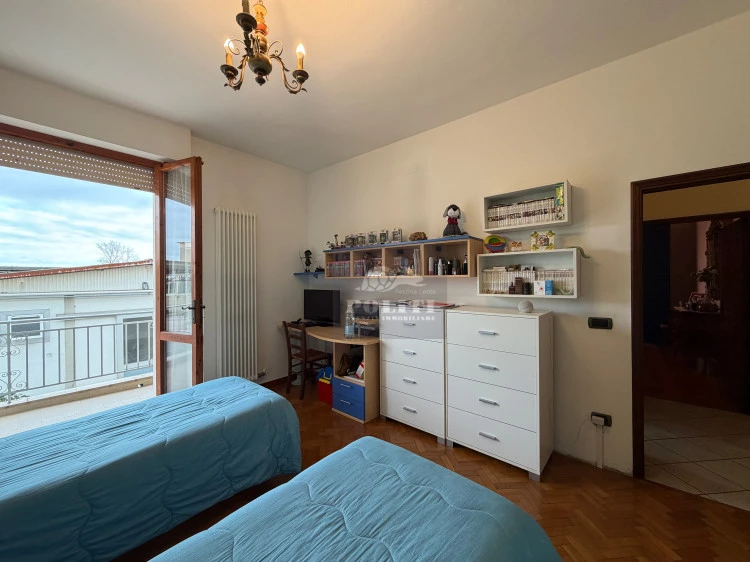 Attraversando il corridoio troviamo, sulla destra, un comodo vano ripostiglio e, a seguire, un’ampia stanza finestrata estremamente versatile: ideale come terza camera matrimoniale, secondo salone, studio professionale o ufficio.